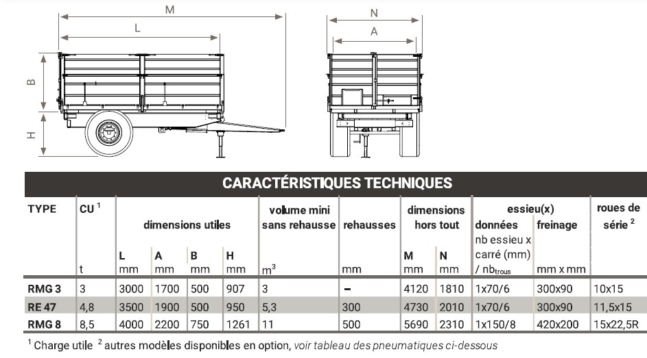 Remorques à ridelles simple essieu – Gamme RMG-RE