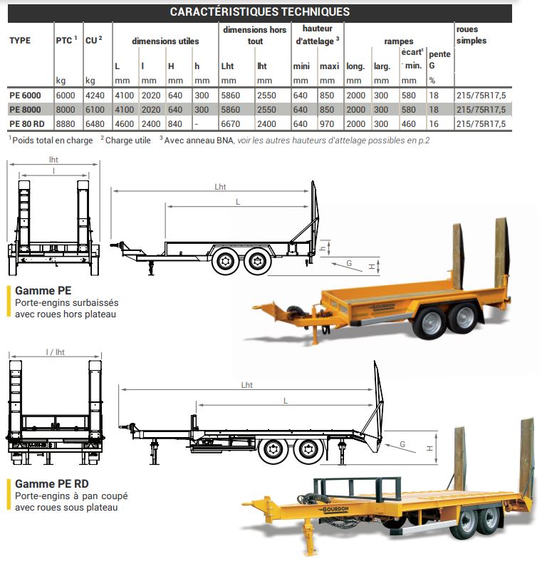 Remorques surbaissées à roues extérieures – Gamme PE